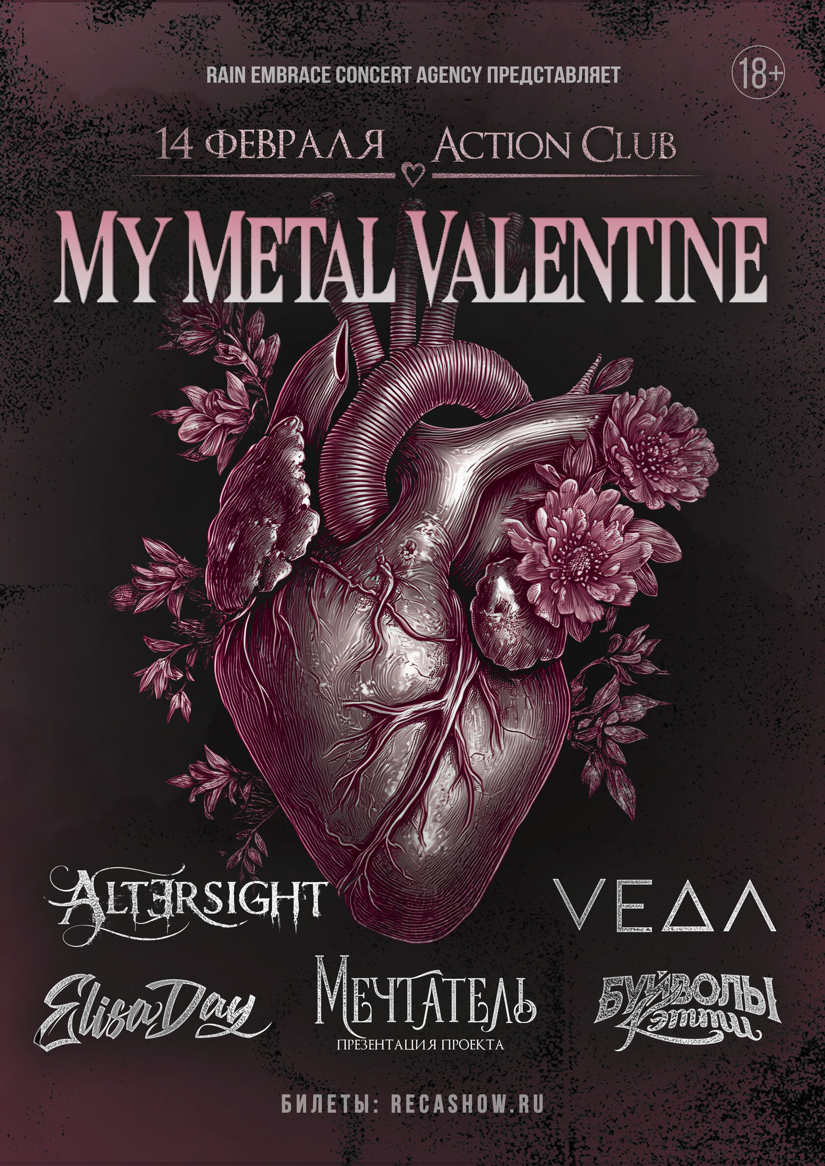 Предлагаем встретить 14 февраля, сгорая в пылком пламени музыки, пусть сердца бьются в ритме метала. Фестиваль «My Metal Valentine» снова возвращается, приглашая на самое горячее свидание этой зимы, приходите на концерт, где нежность женского вокала сплетается с неудержимой мощью гитар.