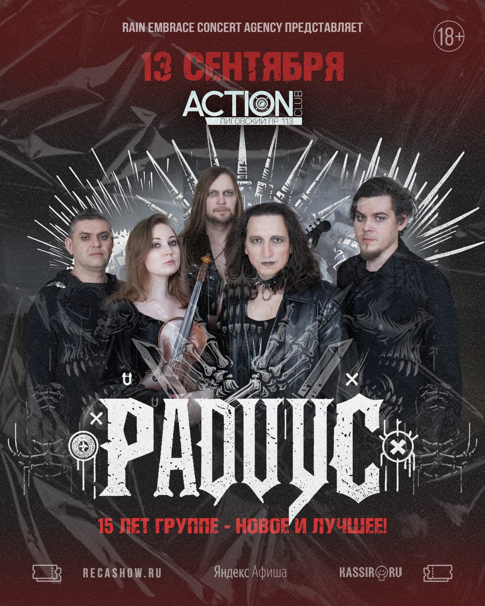 «Радиус» — это уникальная музыкальная энергия, объединяющая русский рок, неофолк, хоррор- и фолк-панк, металл и индастриал. За годы своего существования группа не раз удивляла поклонников смелыми экспериментами со звучанием, стилями и инструментами, создавая по-настоящему неповторимую атмосферу.