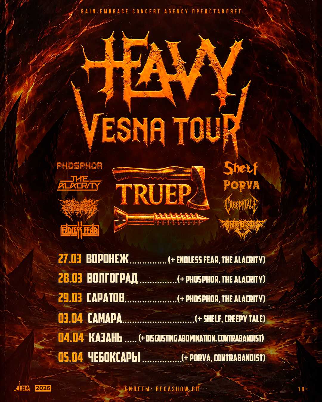Весна 2026-го не сулит ничего хорошего для любителей тяжёлой музыки. А всё потому, что культовая трэш/дэт-группа Truep отправляется в тур-фестиваль HEAVY VESNA TOUR, который прокатится по шести городам Руси-матушки, объединяя тяжёлые и мощные банды со всей страны.