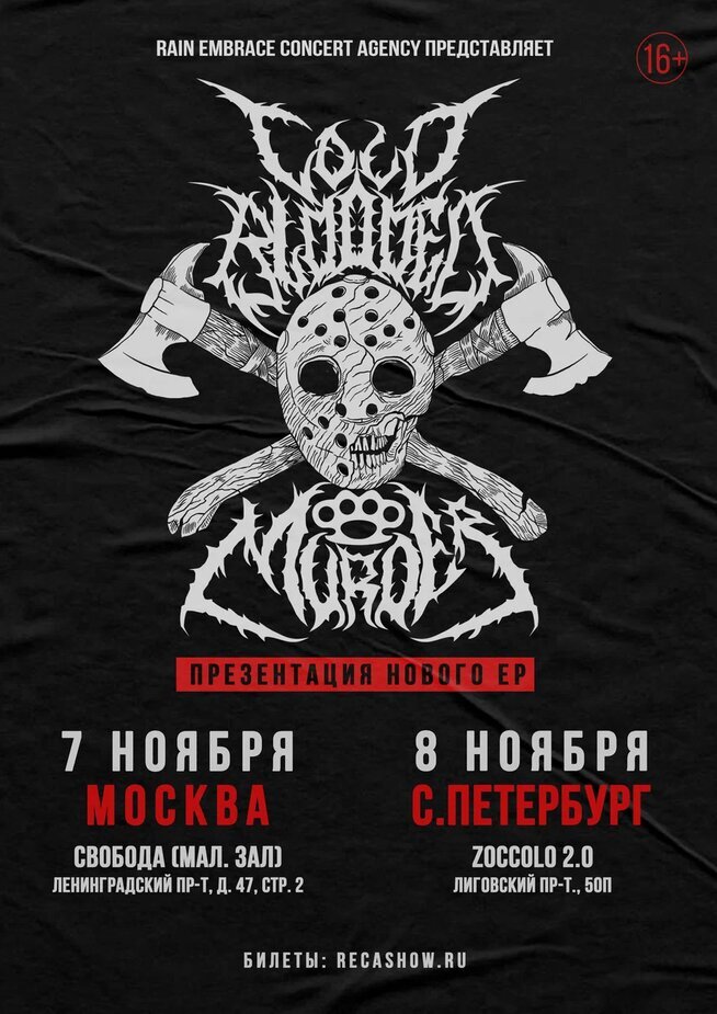 Московские мясники Cold Blooded Murder презентуют новый EP! Банда, известная своим уникальным миксом slamming brutal death, hardcore, nu-metal и horror-rap, приглашает окунуться в мрачный мир ужасов, тёмных историй и паранормальных явлений. Присоединяйтесь к армии поклонников Murder Crew и станьте частью этого мощного шоу!